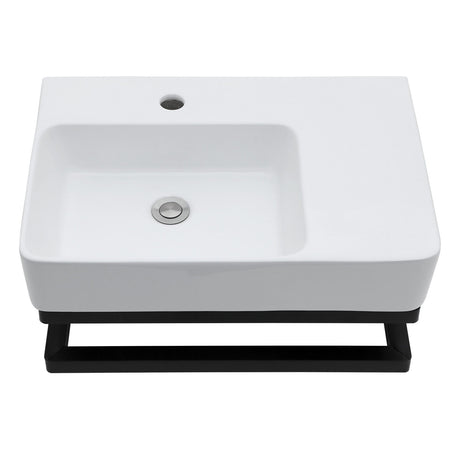 Wall Mounted Bathroom Sink With Towel Bar And Faucet - White / Black