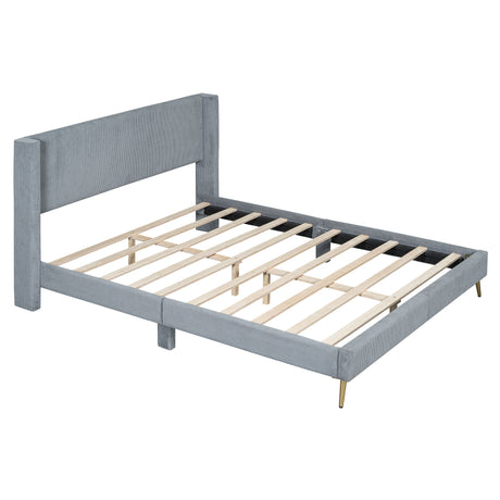 Platform Contemporary Bed With Legs And Upholstered Headboard