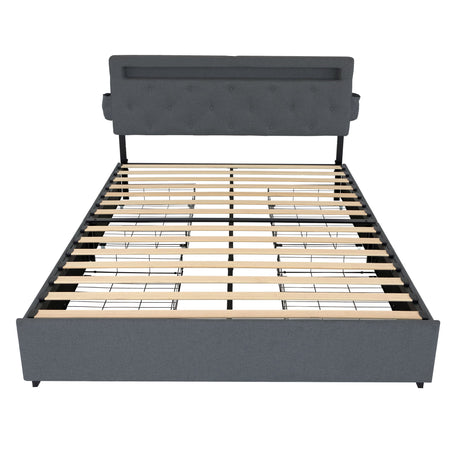 From $30925Unit price /UnavailableUpholstered Platform Bed With 2 Drawers And 2 Sets Of USB Ports On Each Side, Linen Fabric