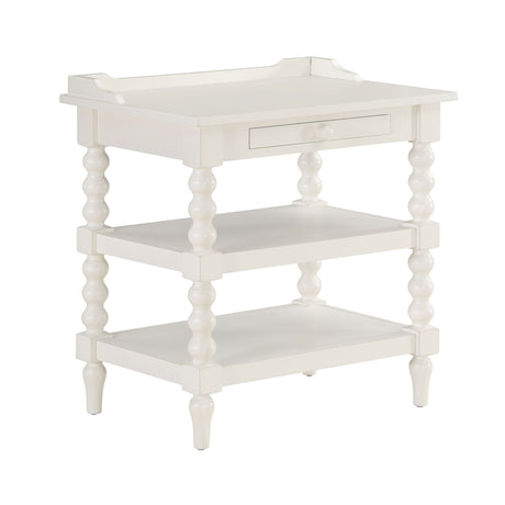 Aria - Nightstand With Styling, 2 Shelves, Pull Out Tray, Spool Turned Legs - Antique White