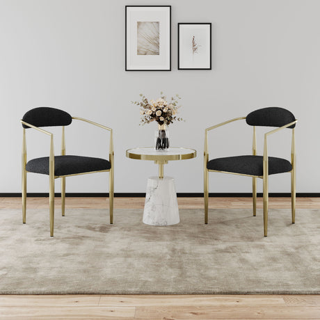 Modern Curved Back Upholstered Dining Chair Set With Metal Legs (Set of 2) - Brown / Black