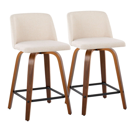 Toriano - Mid Century Modern Fixed Height Counter Stool With Swivel & Square Footrest (Set of 2)