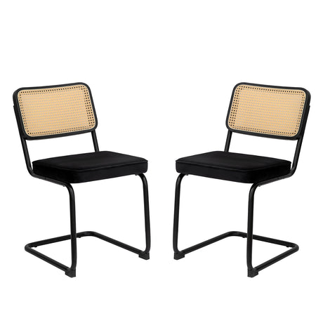 Velvet High Back Nordic Dining Chair Modern Fabric Chair With Black Legs (Set of 2)
