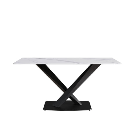 $93443Unit price /Unavailable63" Modern Artificial Stone Straight Edge Metal X-Leg Dining Table, 6 People - White / Black