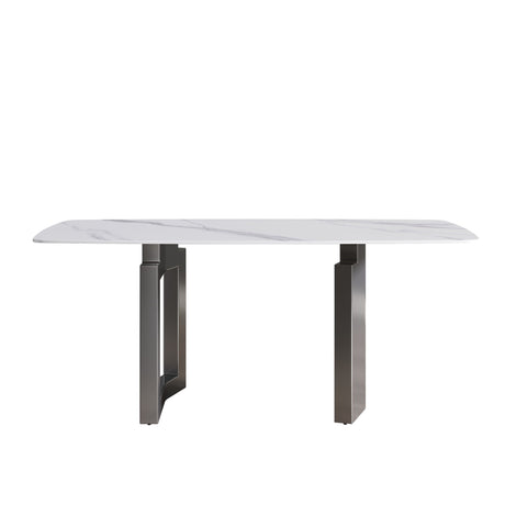 70.87" Modern Artificial Stone White Curved Black Metal Leg Dining Table - White / Black