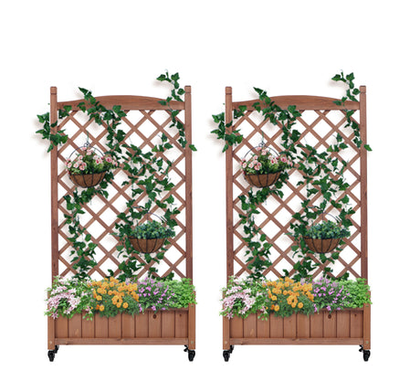 Raised Garden Bed With Trellis 2 Pack, Outdoor Planter Box & Plant Stand With Climbing Racks - Brown
