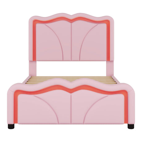 From $56799Unit price /UnavailableUpholstered Platform Bed & Curve Shaped And Height Adjustable Headboard, LED Light Strips