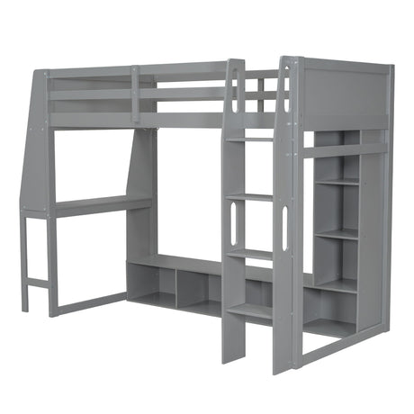 $1,27385Unit price /UnavailableLoft Bed & L Shaped Desk, Drawers, Cabinet, And Storage Staircase