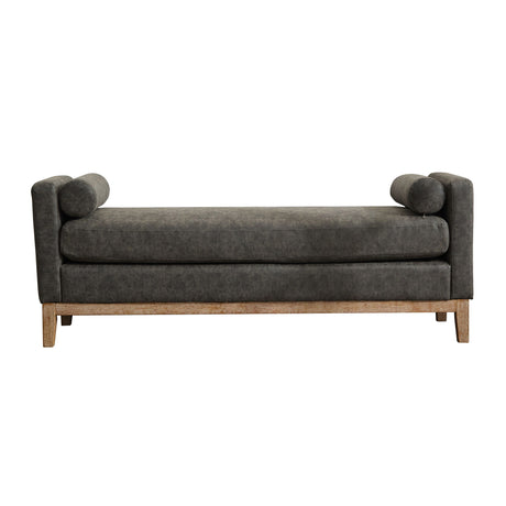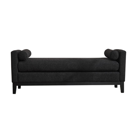 Elegant Upholstered Bench, Daybed, Ottoman With Wood Legs & 2 Bolster Pillows - Black Boucle