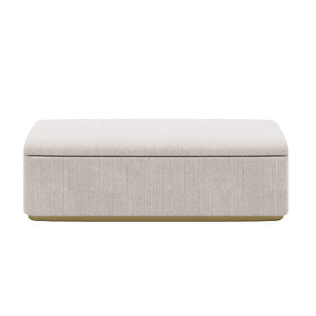 Chic Corduroy Upholstered Storage Ottoman With Vertical Stripe Design - Light Gray
