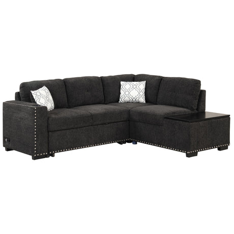 L-Shape Sofa Bed Pull-Out Sleeper Sofa With Wheels, USB Ports, Power Sockets For Living Room