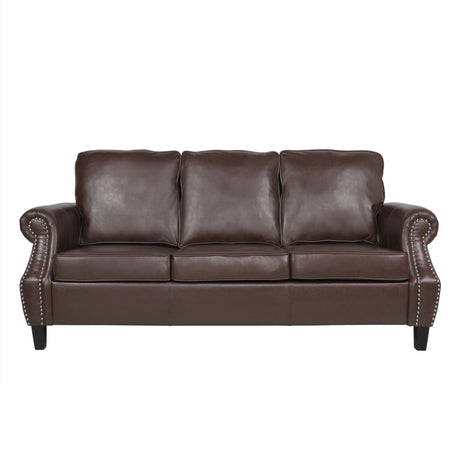 Rolled Arm Sofa With Nailhead Trim With Wooden Legs