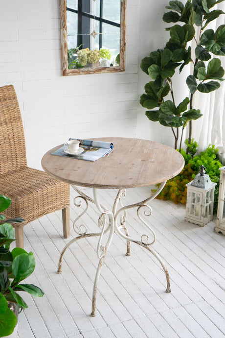 $22914Unit price /UnavailableRound Wooden Table With Metal Scrollwork Legs - White Washed