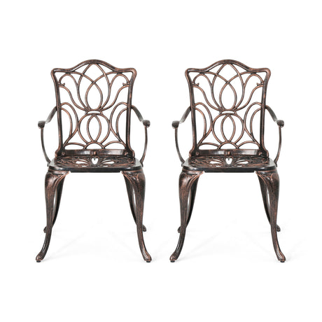 $86227Unit price /UnavailableOutdoor Dining Chair With Floral Design And Curved Saber Legs (Set of 2) - Copper