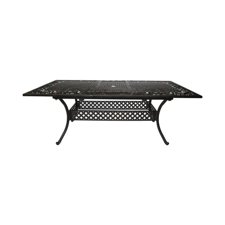 Outdoor Cast Aluminum Dining Table With Lattice Top And Umbrella Hole - Black