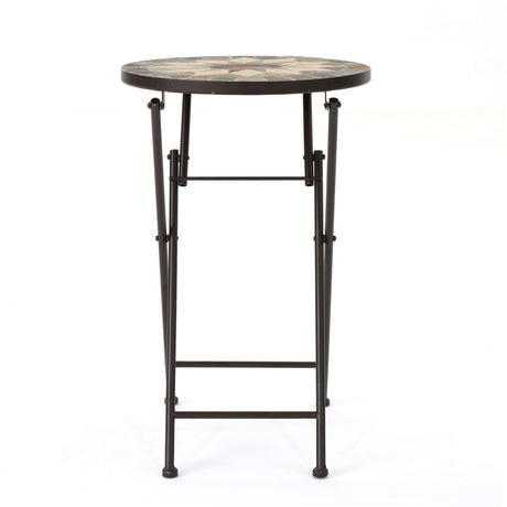 $15615Unit price /UnavailableOutdoor Round Side Table With Mosaic Style Top And Curved Iron Legs - Blue / Matte Black