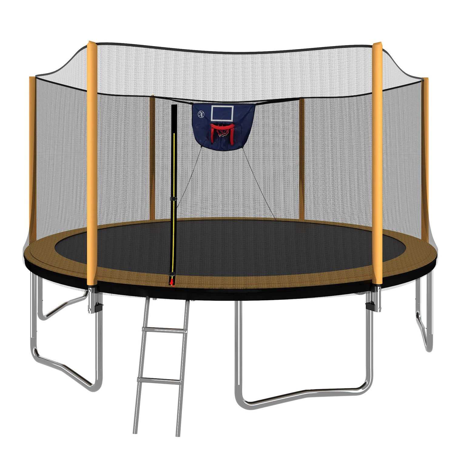 14Ft Powder Coated Advanced Trampoline With Basketball Hoop Inflator And Ladder (Outer Safety Enclosure) - Orange