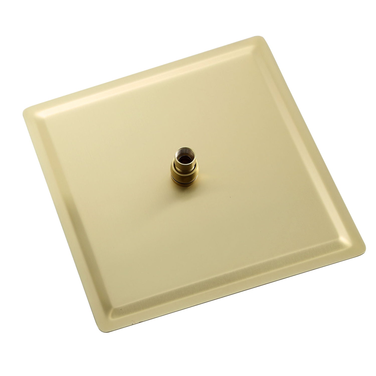16" Square Stainless Steel Rainfall Shower Head Wall / Ceiling Mount With Self Cleaning Nozzles & Full Coverage Design - Gold
