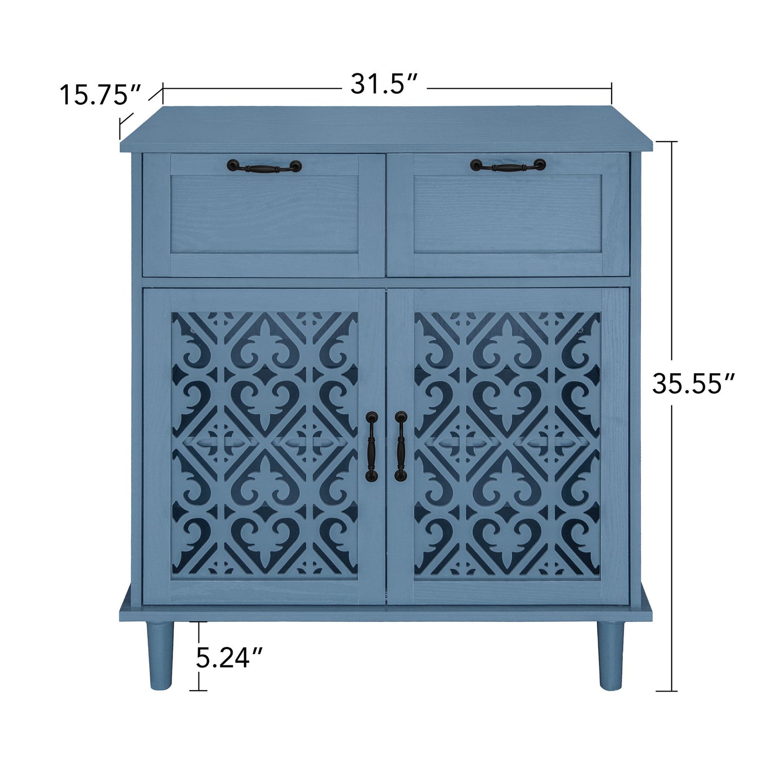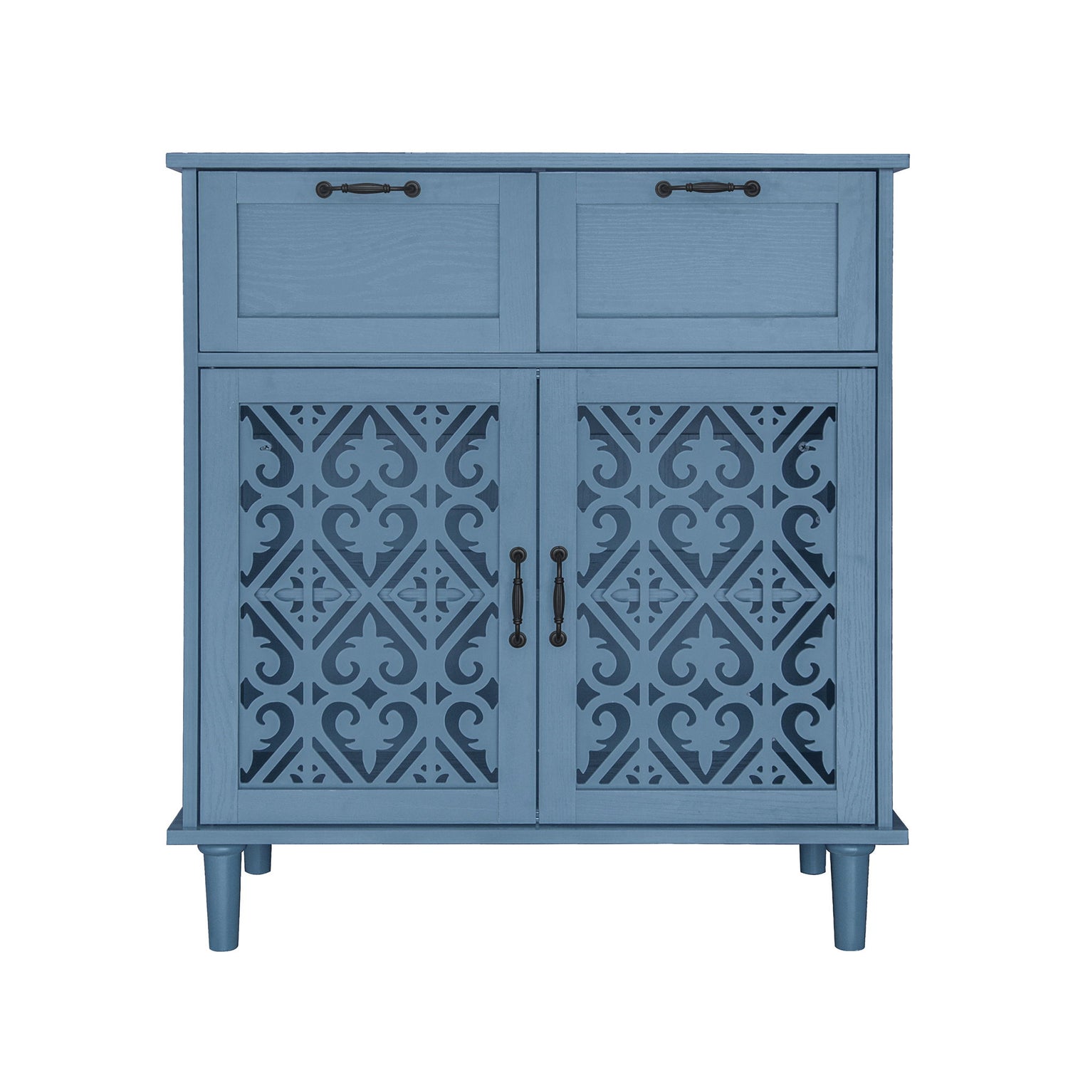 2 Door 2 Drawer Cabinet, American Furniture, Suitable For Bedroom, Living Room, Study - Blue