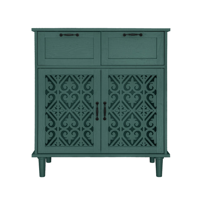 2 Door 2 Drawer Cabinet, American Furniture, Suitable For Bedroom, Living Room, Study - Dark Green