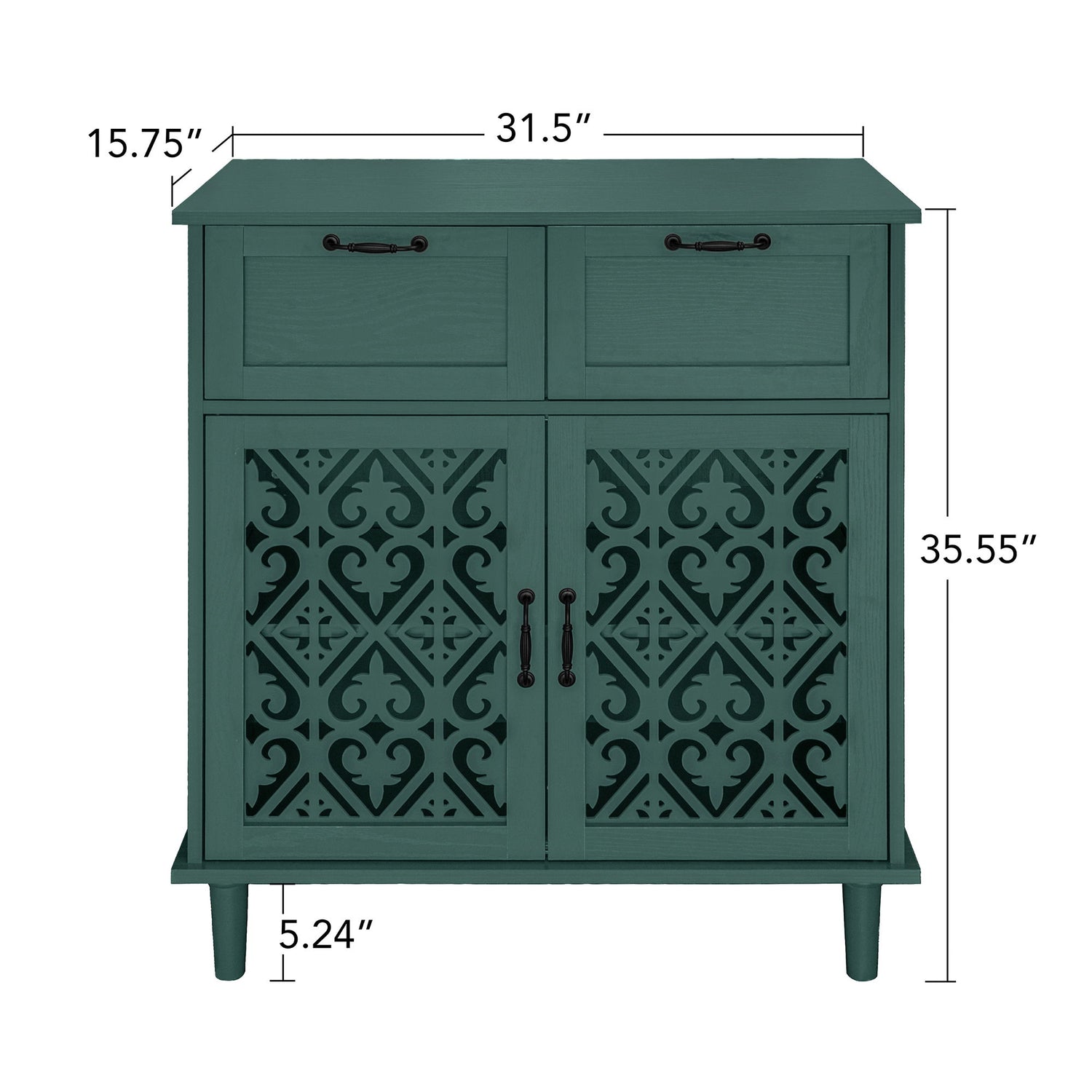 2 Door 2 Drawer Elegant Cabinet - Dark Green is backordered and will ship as soon as it is back in stock.