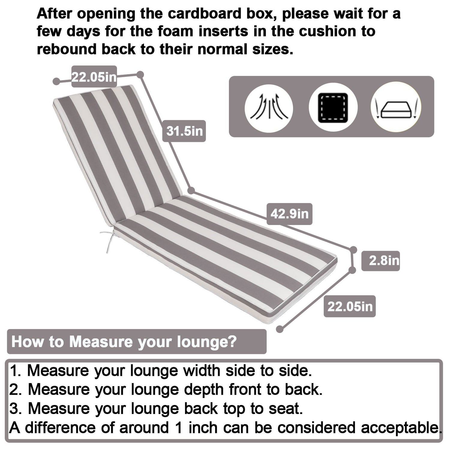 - Secure & Adjustable Fit: Equipped with an adjustable back strap and seat ties to keep the cushion securely in place on various chaise lounge styles.