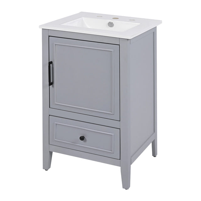 20" Bathroom Vanity With Sink, Bathroom Cabinet With A Door, Door Shelf Storage And Adiustable Foot Pads, A Drawer - Gray