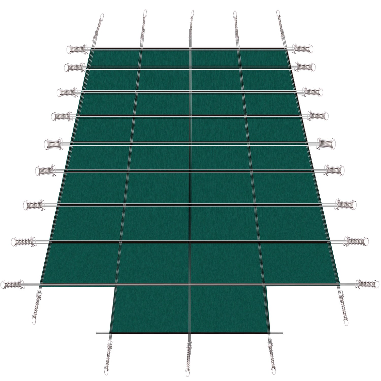 Green Mesh Pool Safety Cover For 20 X 40Ft Rectangular Inground Winter Swimming Pools With 4 X 8Ft Center End Step, Triple Stitched High Strength Mesh - Green