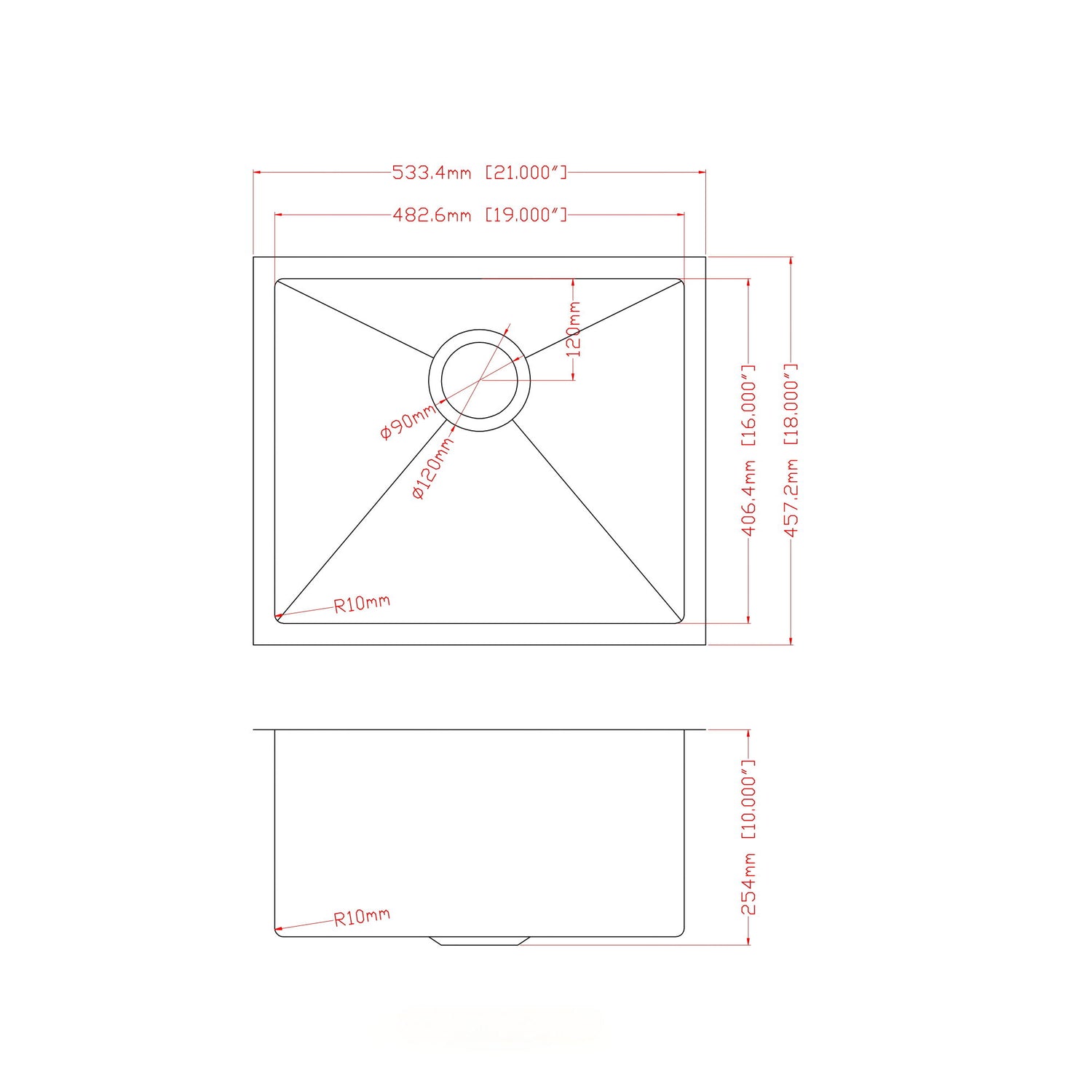 21" Undermount Kitchen Sink, 16 Gauge T304, 10" Deep Single Bowl Basin - Brushed Nickel