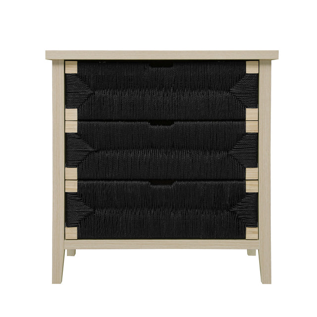 - Stylish Handle-Free Design: Drawer fronts feature a pinewood frame with hand-woven rope for a natural, modern look without traditional handles.