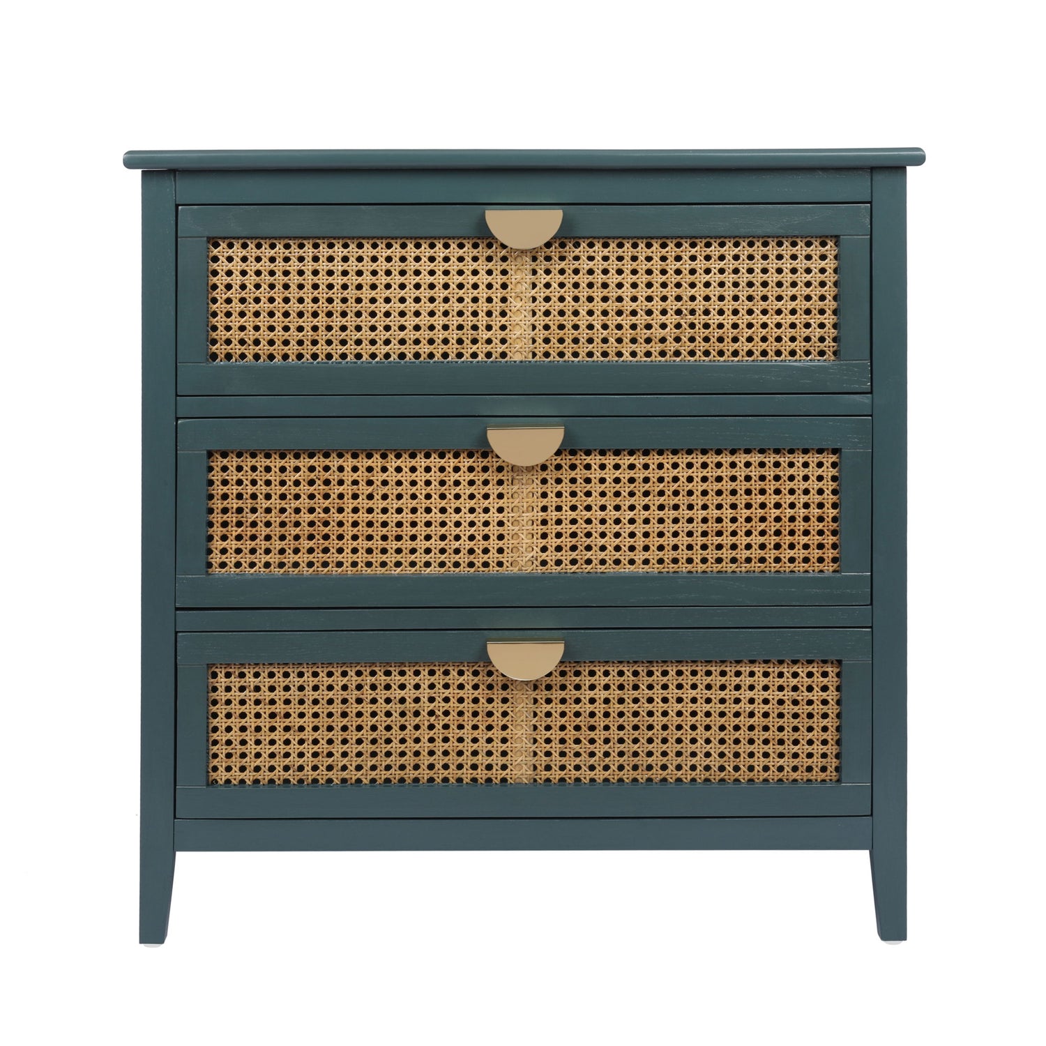 3 Drawer Cabinet - Natural Rattan, Suitable For Bedroom - Green