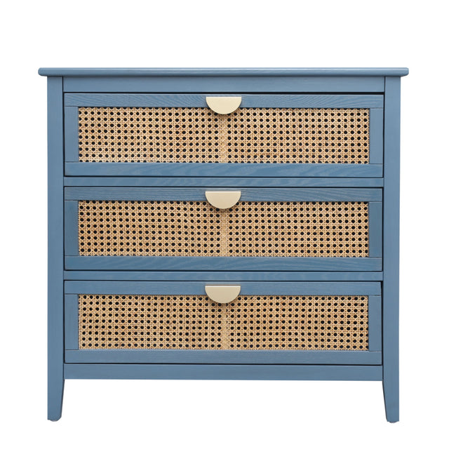 3 Drawer Cabinet Natural Rattan Suitable For Bedroom - Blue