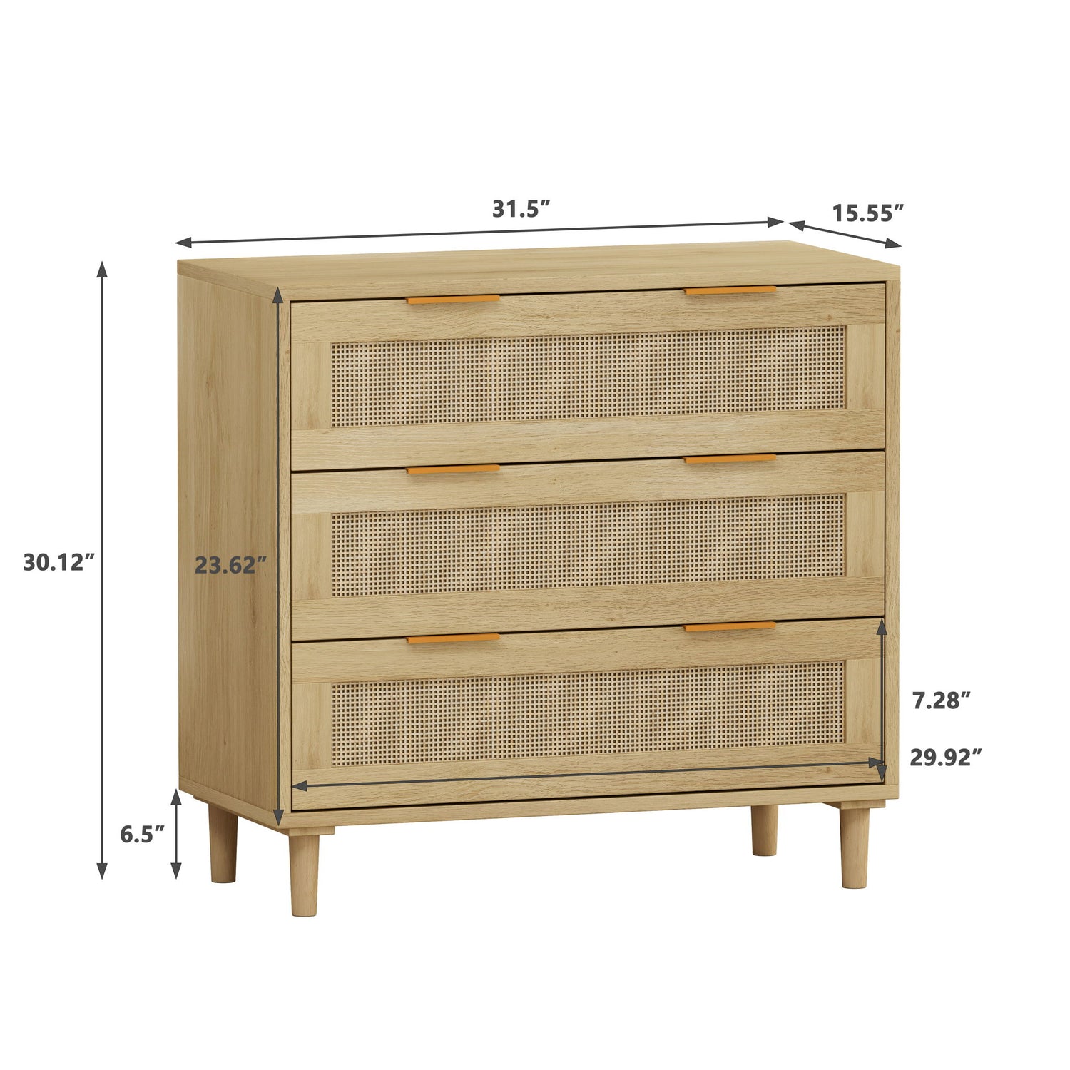 3 Drawers Rattan Storage Cabinet Rattan Drawer, For Bedroom, Living Room, Dining Room, Hallways (Set of 2) - Oak