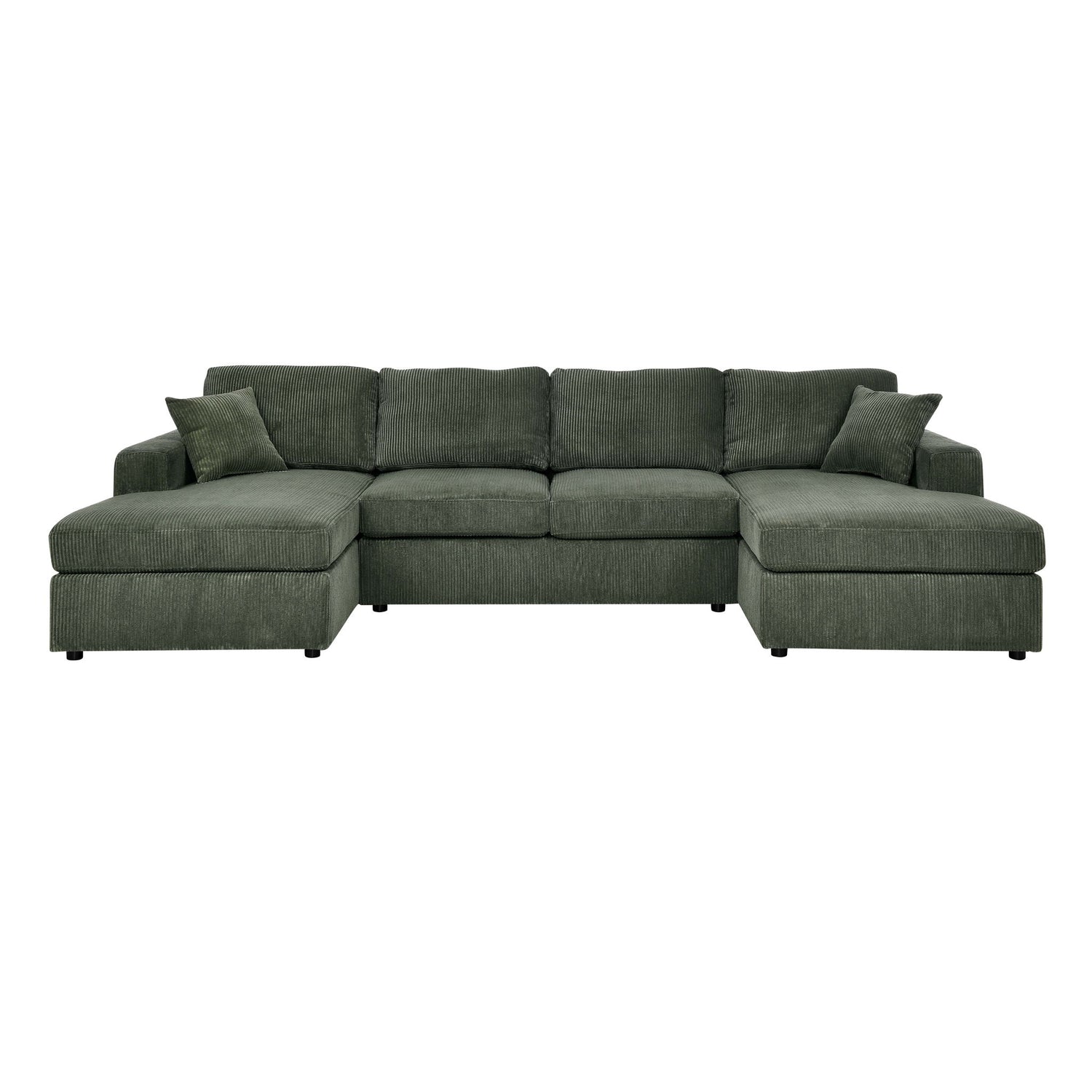 3 Piece Corduroy Double Chaise Sectional Sofa - Green