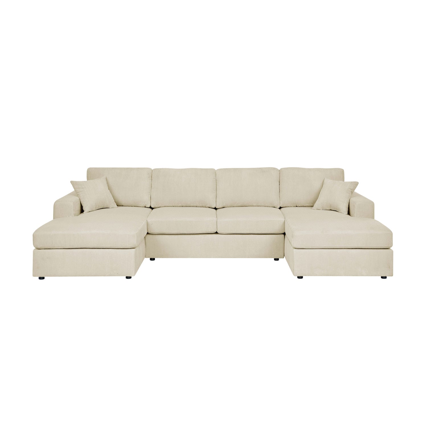 3 Piece Corduroy Double Chaise Sectional Sofa - Cream
