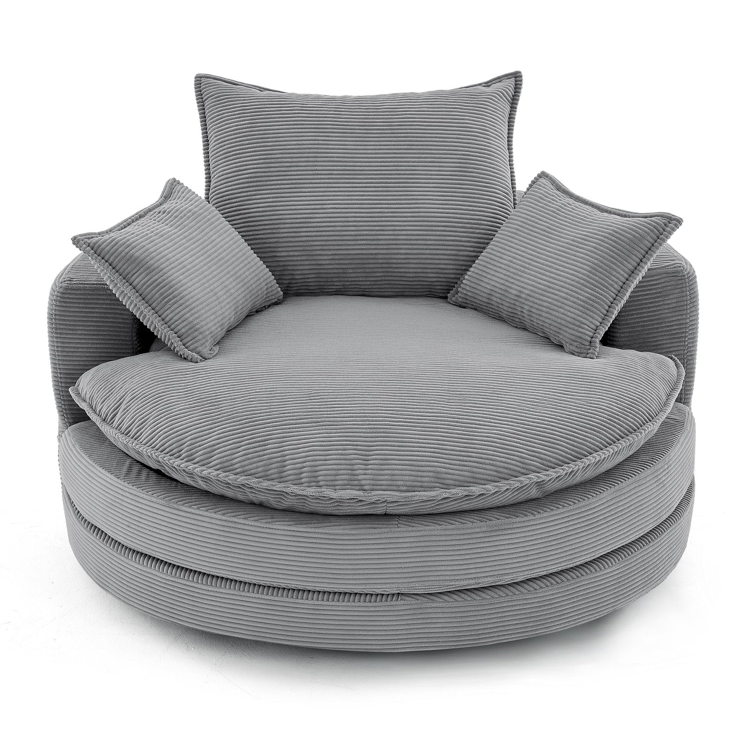 360° Swivel Sofa Chair Accent Barrel Chair With Dual Layer Cushion And 3 Removable Pillows, Corduroy - Gray