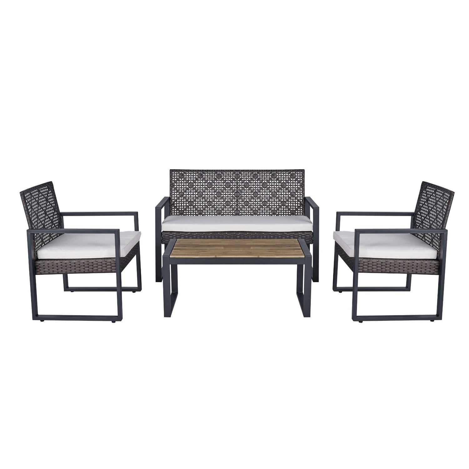 4 Piece Patio Furniture Set With Acacia Wood Table Top And Cushions