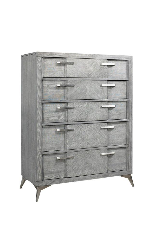 5 Drawer Chest Book Matched Veneers - Gray