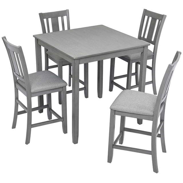 5 Pieces Dining Table Set, Wooden Dining Square Table Set For 4, Counter Height Kitchen Table Set With Square Table And 4 Upholstered Chairs For Small Space - Gray