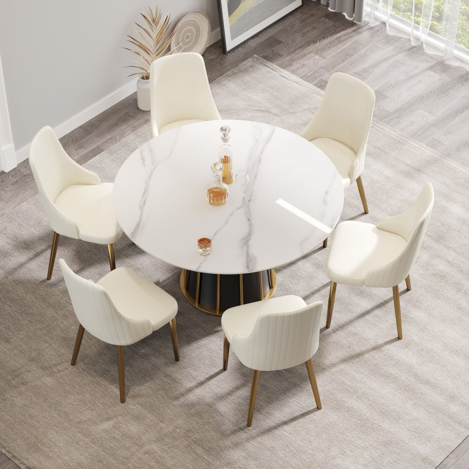 53.15" Modern Artificial Stone Round Panel Metal Iron Base Dining Table, Can Accommodate 6 People, (Not Including Chairs) - White / Black