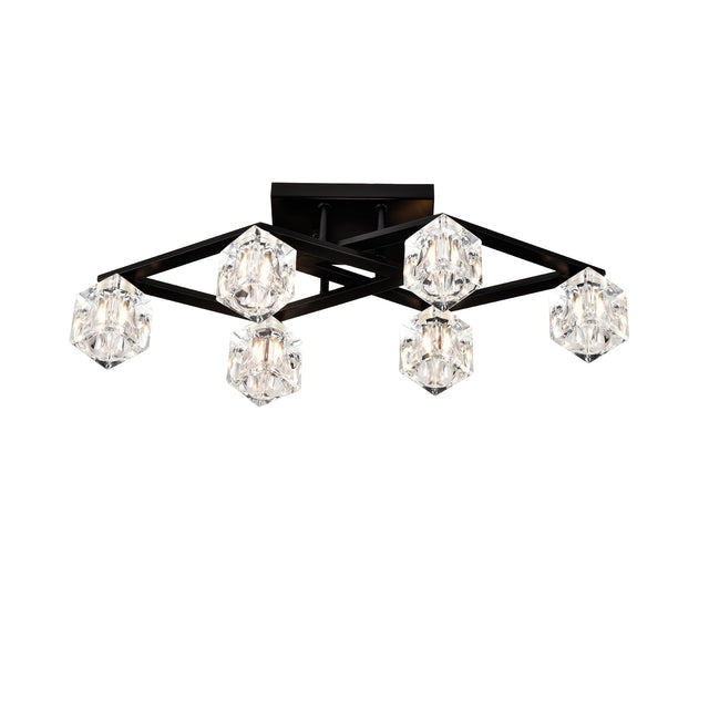 6 Light Crystal Ceiling Light For Dining Room, Modern Ceiling Lamp With Light Fixture For Farmhouse Entryway Living Room (6*G9 Bulbs Included) - Matte Black