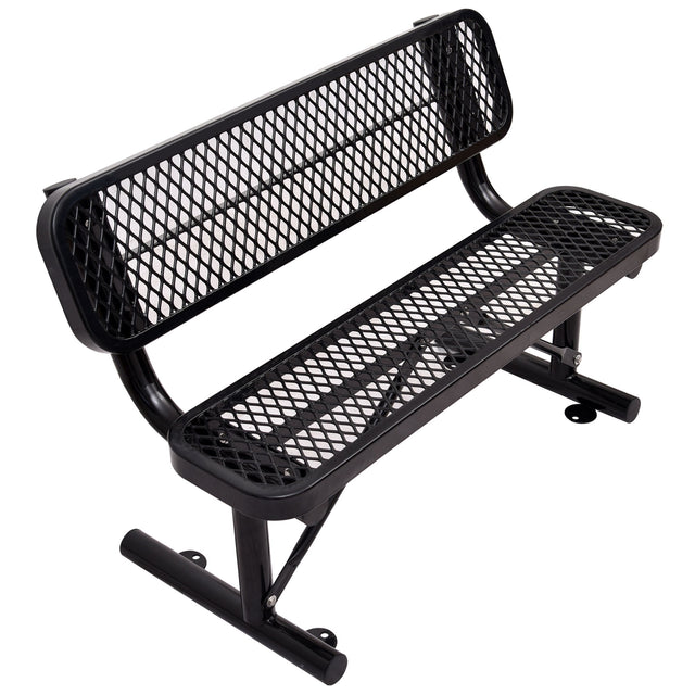 6' Outdoor Steel Bench With Backrest - Black / 23.2"W x 32.5"D x 48"H is backordered and will ship as soon as it is back in stock.