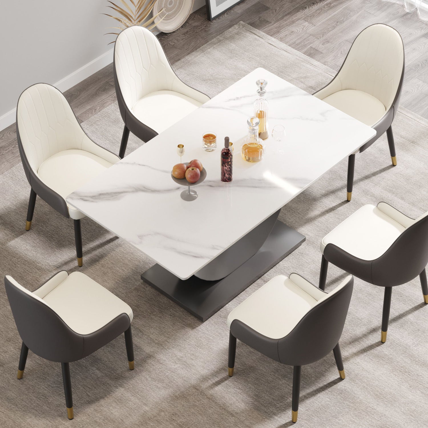 63" Modern Artificial Stone Crescent-Shaped Metal Legs, Can Accommodate 6-8 People - White / Black