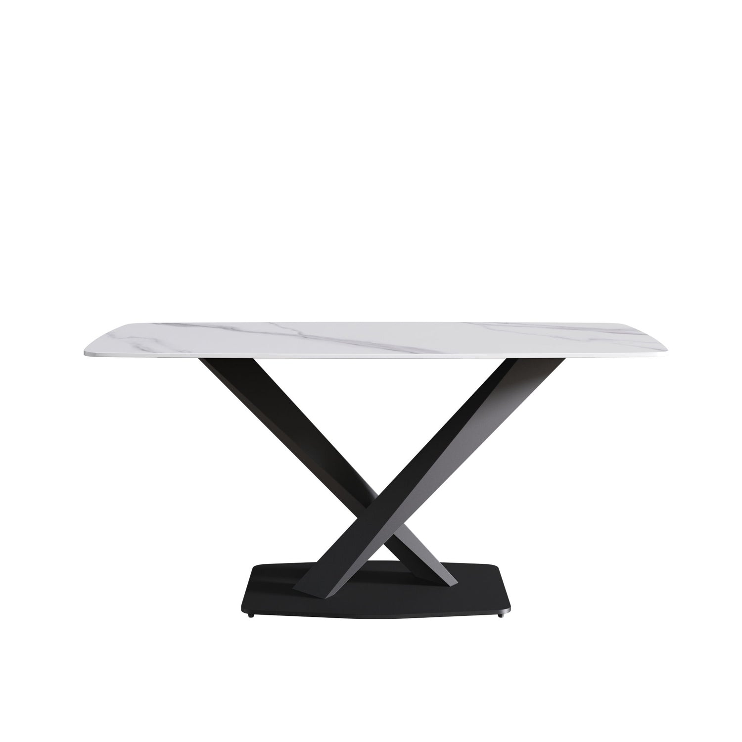 63" Modern Artificial Stone Dining Table, 6 People - White / Black