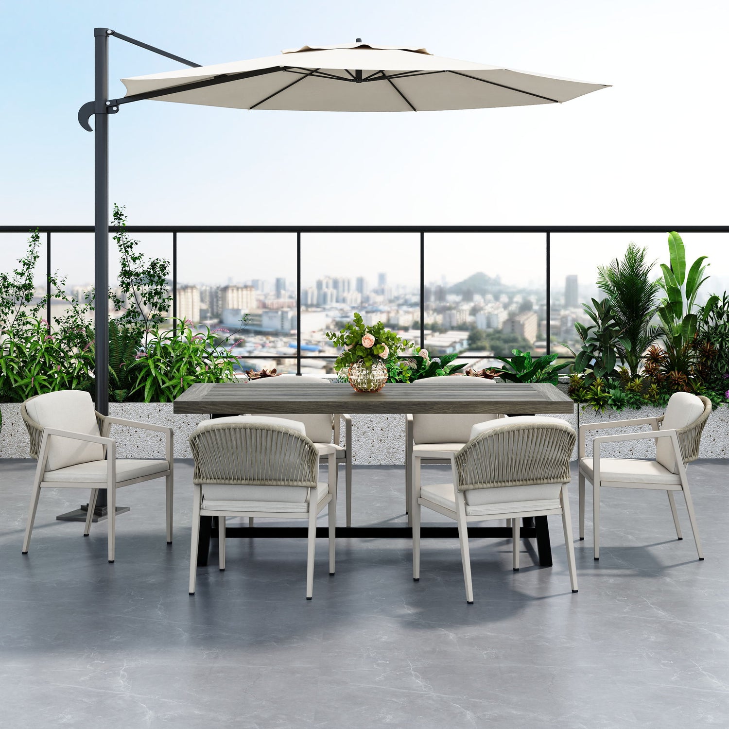 7 Pieces Modern Outdoor Dining Set With Acacia Wood Table And Chairs