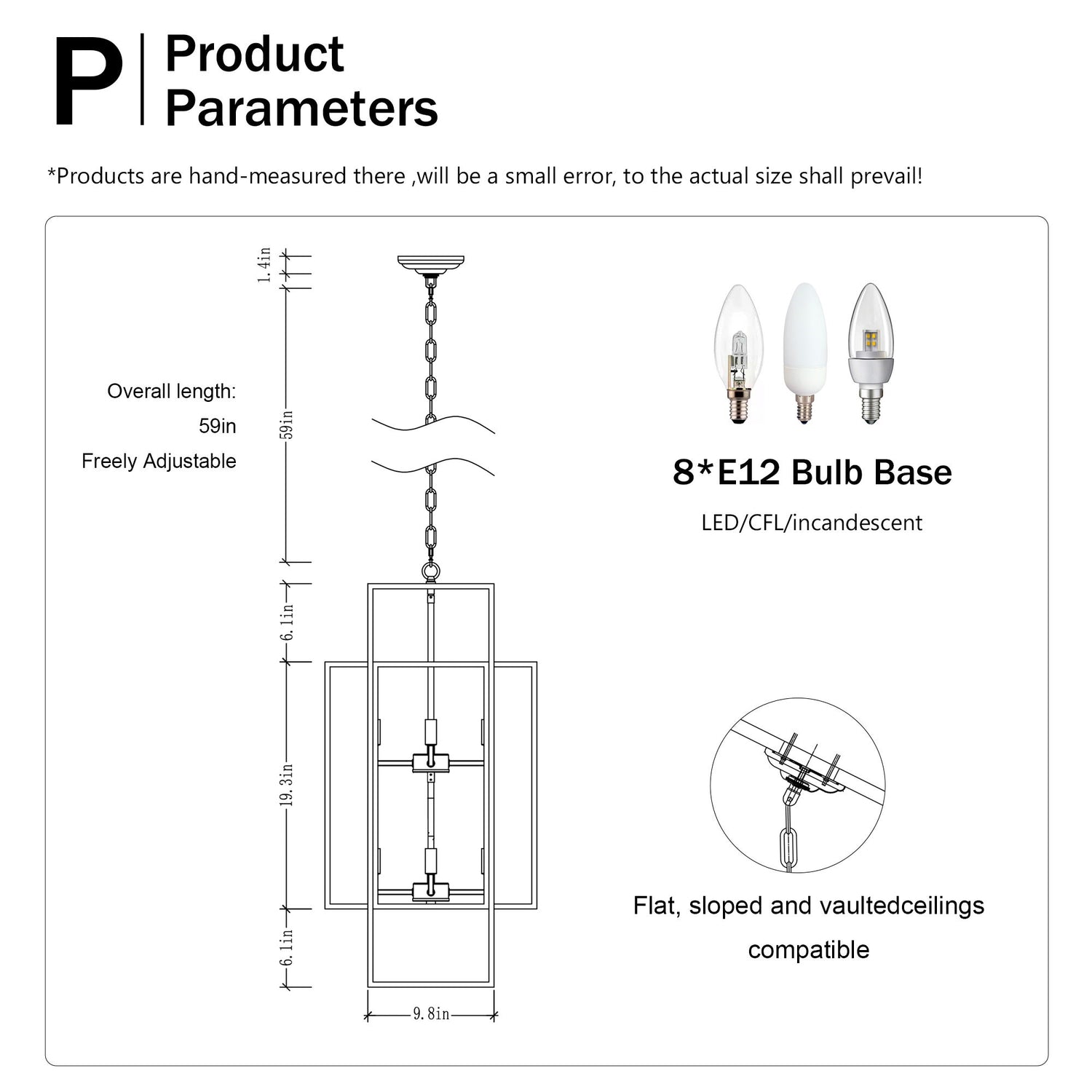 - Bulb Compatibility: The chandelier is equipped with 8 E12 socket bases, supporting bulbs with a maximum power of 25W each, ideal for creating tailored lighting solutions.