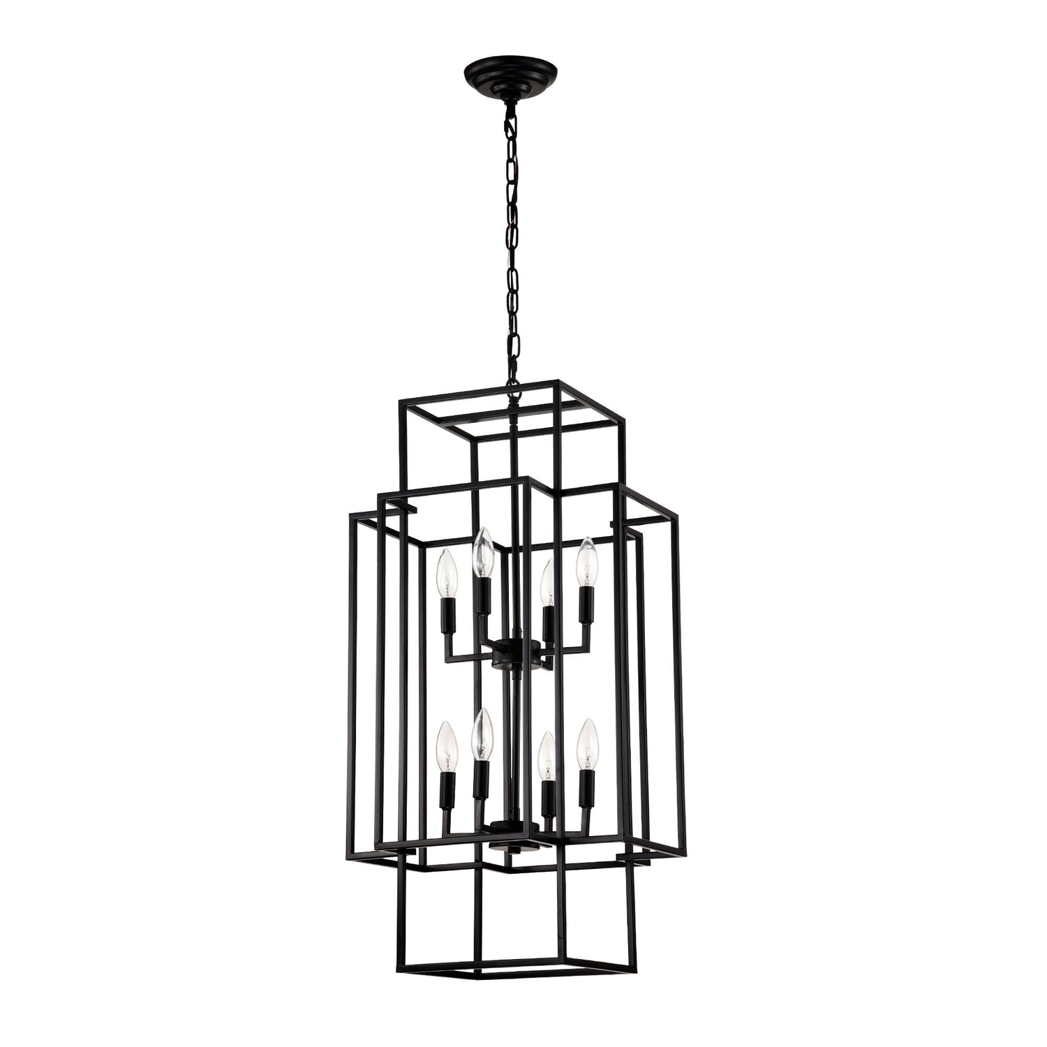 8 Light Metal Lantern Tiered Pendant Hanging Light Fixtures, Industrial Farmhouse Adjustable Height Chandeliers For Dining Room Hallway Foyer Entryway (E12 Bulbs Not Included) - Matte Black