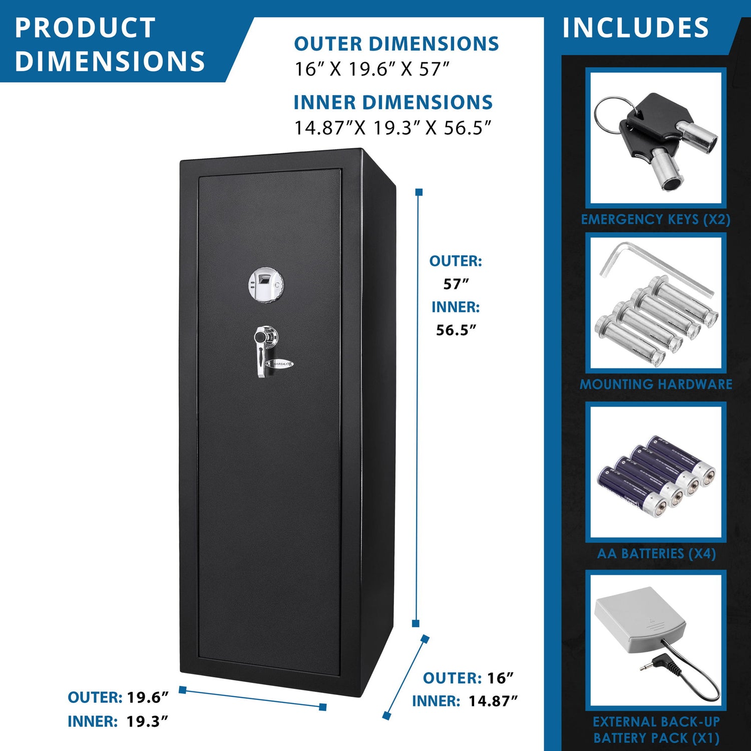16.0"W x 19.6"D x 57.0"H - 139.0 lb