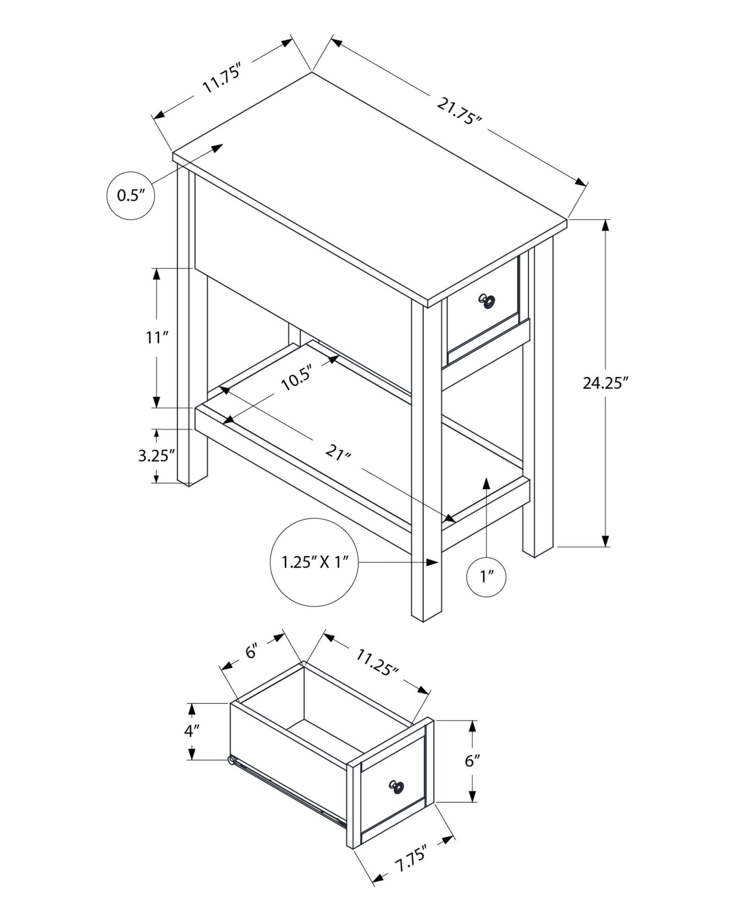 Accent End Table, 2 Tier, Narrow, Lamp, Storage Drawer, Charming Design - Dark Brown is backordered and will ship as soon as it is back in stock.