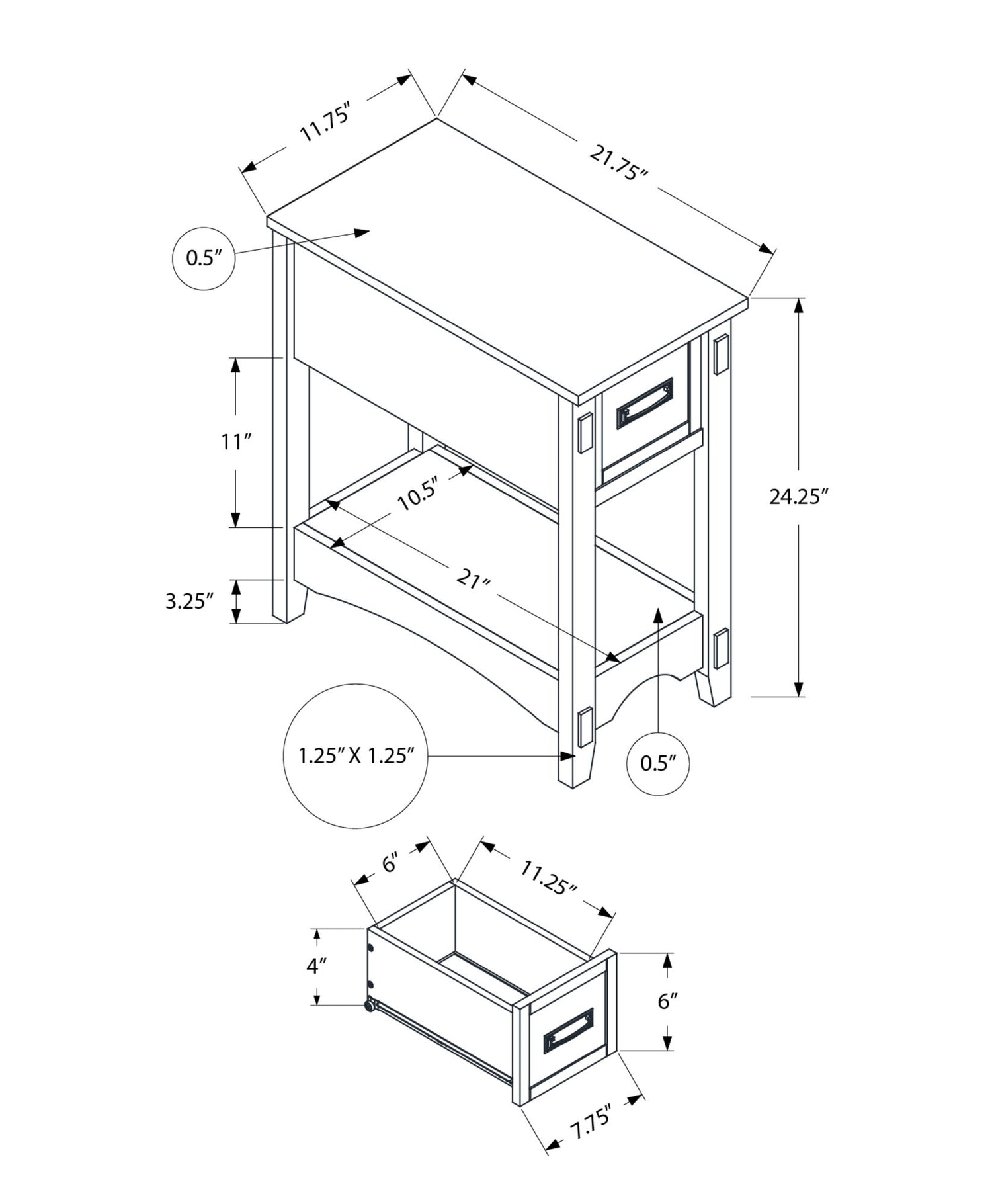 Accent End Table, 2 Tier, Narrow, Storage Drawer, Transitional - Walnut is backordered and will ship as soon as it is back in stock.